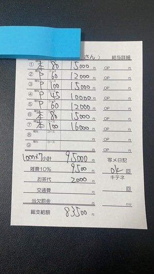 お給料 【83,500円】9時から19時上がりのIちゃん