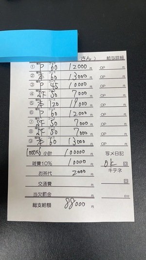 10/24 お給料【106,000円】9時から21時あがりのmちゃん