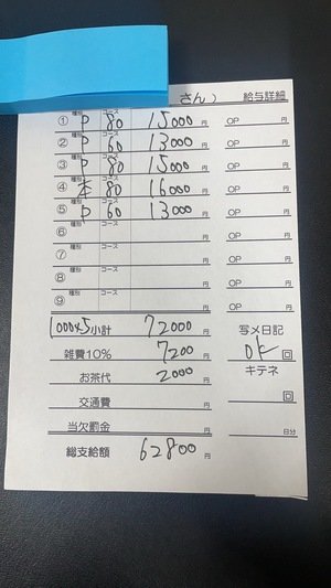 お給料 72,000円