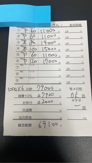お給料【69,100円】10時から19時あがりのNちゃん