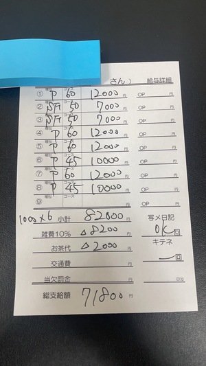 △お茶代 2000円