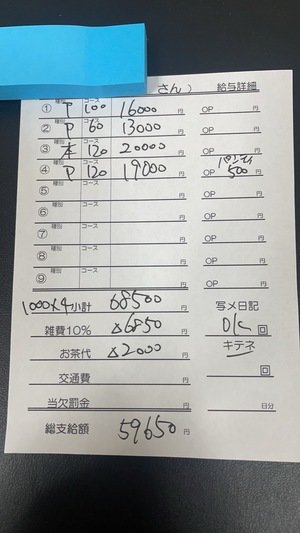 10/7 お給料【53,800円】11時から18時あがりのmちゃん