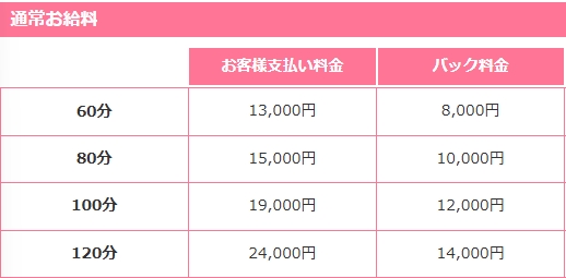 これで見ると一番計算しやすいのが80分10000円のバックですね。