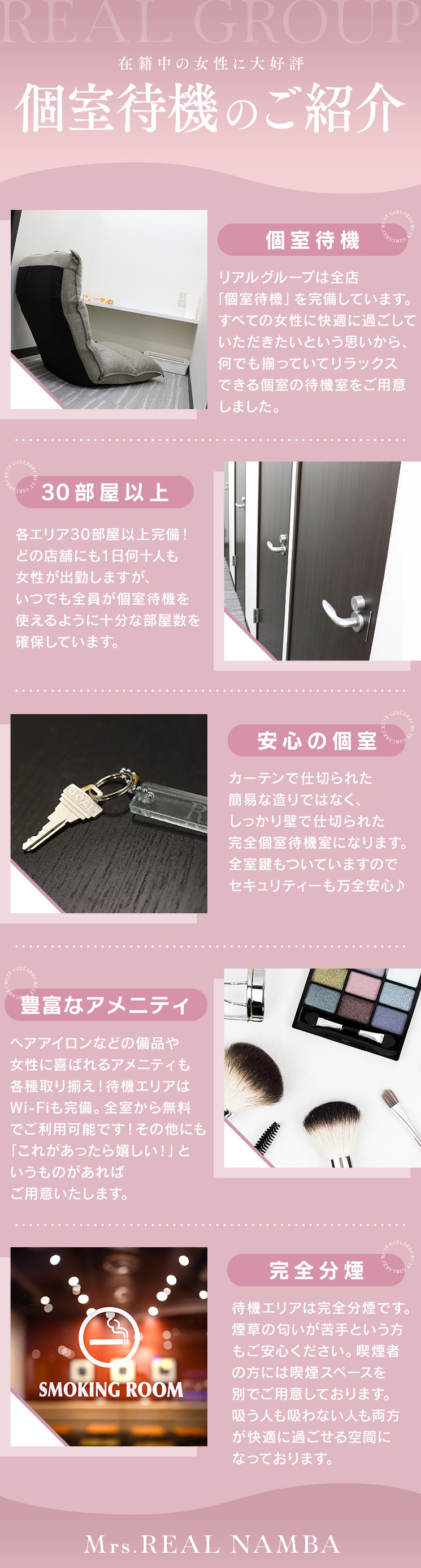 リアルグループでは、女性が不安なくお仕事できるよう、さまざまなサポートを整えています。