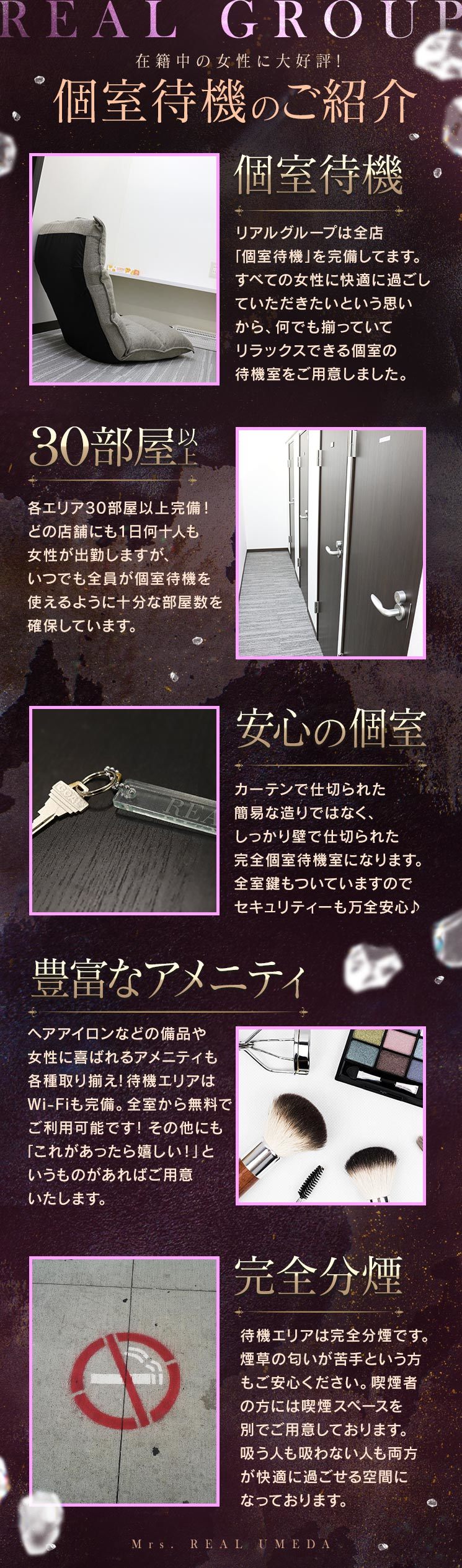 リアルグループはお仕事内容、お給料、待遇面などの女性に関わる全てのものにゼッタイ嘘をつきません。