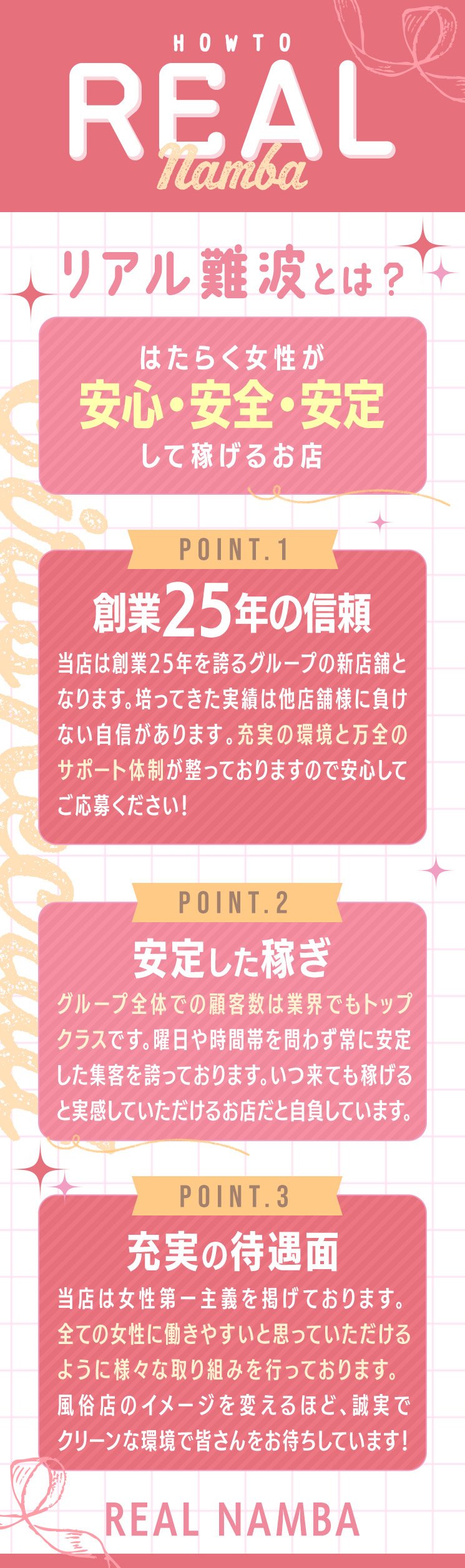 【リアル難波店】はお仕事内容・お給料・待遇面などの女性に関わる全てのものに嘘をつきません。