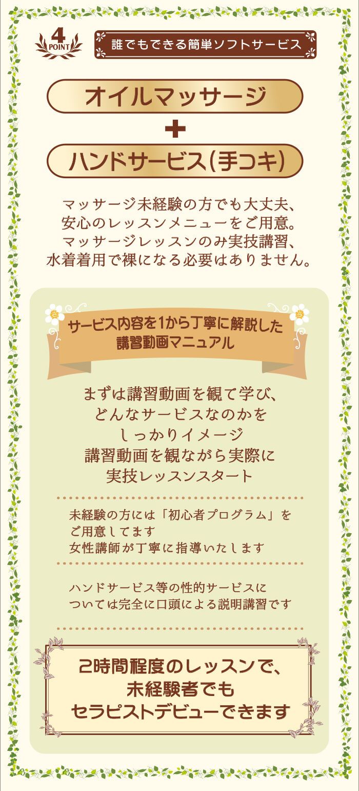 オイルマッサージの技術も「メンエス凄腕講師の女性」が1から丁寧に上級テクニックまで完全指導します。