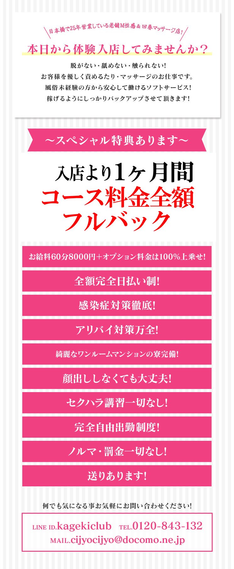 お問い合わせの際は、はじめに「ガールズヘブンを見ました」と言うとスムーズです。