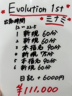 | 店舗名 | Evolution1st ミナミ谷九店 | |