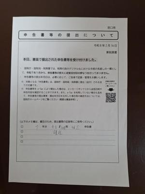 ところでこの写真の紙を見て下さい。今は申告書を提出してもこんな紙切れ1枚なのです。電子申告で提出している人はこの紙すらないのです。時代が変わったものです。電子申告にしようかとも思いましたが、やはり職員の人と相談して疑問点をなくしてから直接提出した方が安心だからと出向いて提出しないと気が済まないのは歳のせいかもしれません(笑)。
