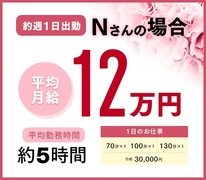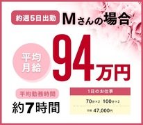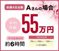 | A | 【5】 ※勤務時間帯は女性により異なります。 【営業時間帯】 ※朝9時~翌朝3時頃迄 (女性は好きな時間帯に出勤して頂いております) (朝のみ) (朝~お昼) (お昼~夕方) (夕方~夜) (夜~深夜) (深夜のみ) ※上記の出勤時間帯の基本的なお給料の目安になります。 【3時間~4時間】 ◆約20,000円~35,000円 【5時間~8時間以上】 ◆約35,000円~80,000円 ※実際に約8時間~9時間労働で… 一日10万円以上持って帰る方も多数在籍しております。 |