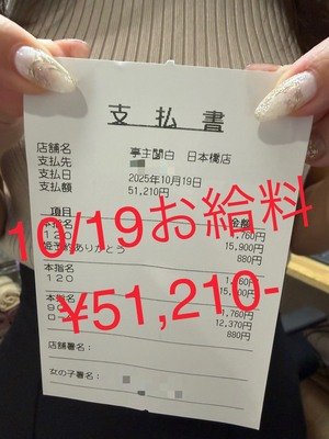 🌸【10月19日勤務】7時間勤務で51,210円のお給料✨