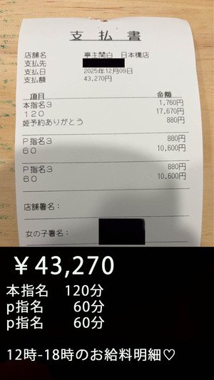 12:00-18:00の出勤で43,270円を受け取られました✨
