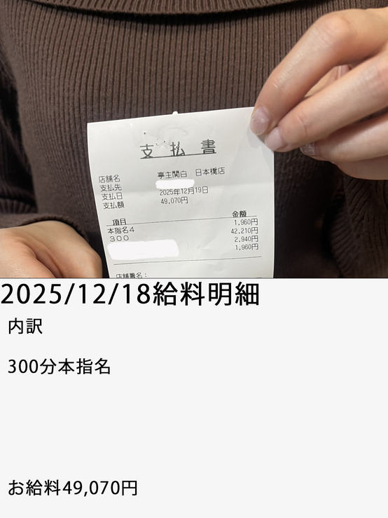 18:00-0:00の出勤で49,070円を受け取られました✨