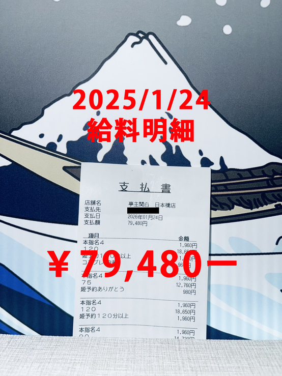 🌸【1月24日勤務】15:00-23:00勤務¥79,480円のお給料✨