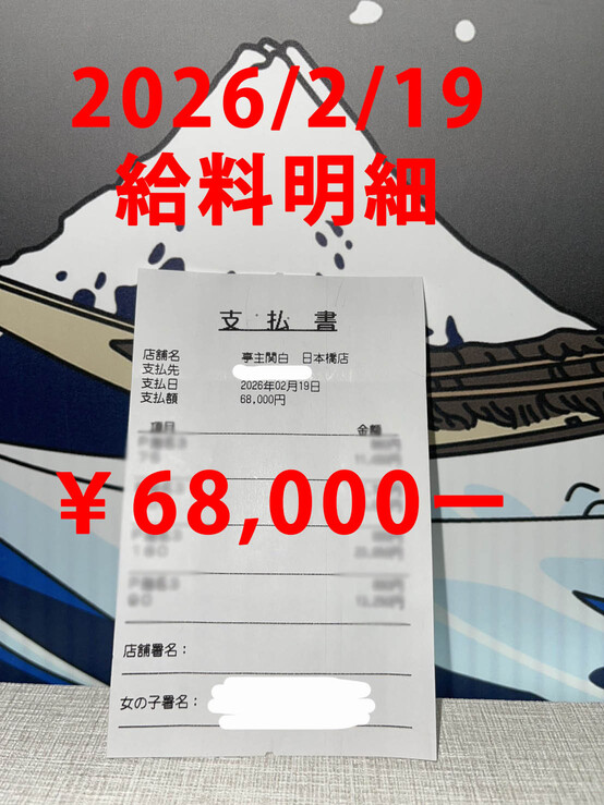🌸【2月19日勤務】12:00-23:00勤務¥68,000円のお給料✨