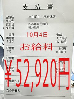 🌸【10月04日勤務】1日で52,970円のお給料✨