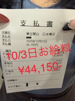 🌸【10月03日勤務】1日で44,150円のお給料✨