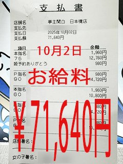 🌸【10月01日勤務】1日で71,640円のお給料✨