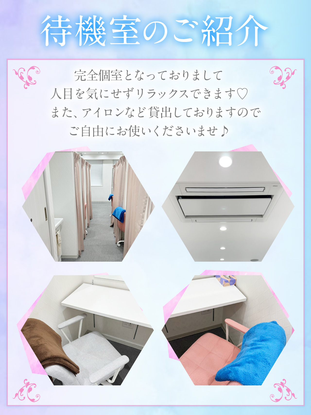 完全個室待機♡人目を気にせずリラックス♡