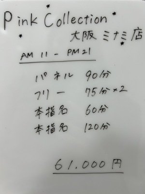 | 店舗名 | Pink Collection 大阪ミナミ店~ピンクコレクション~ | |