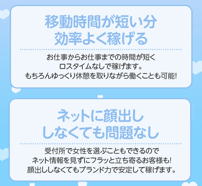受付型ホテヘルなので接客に専念するだけで稼げます(^_-)-☆