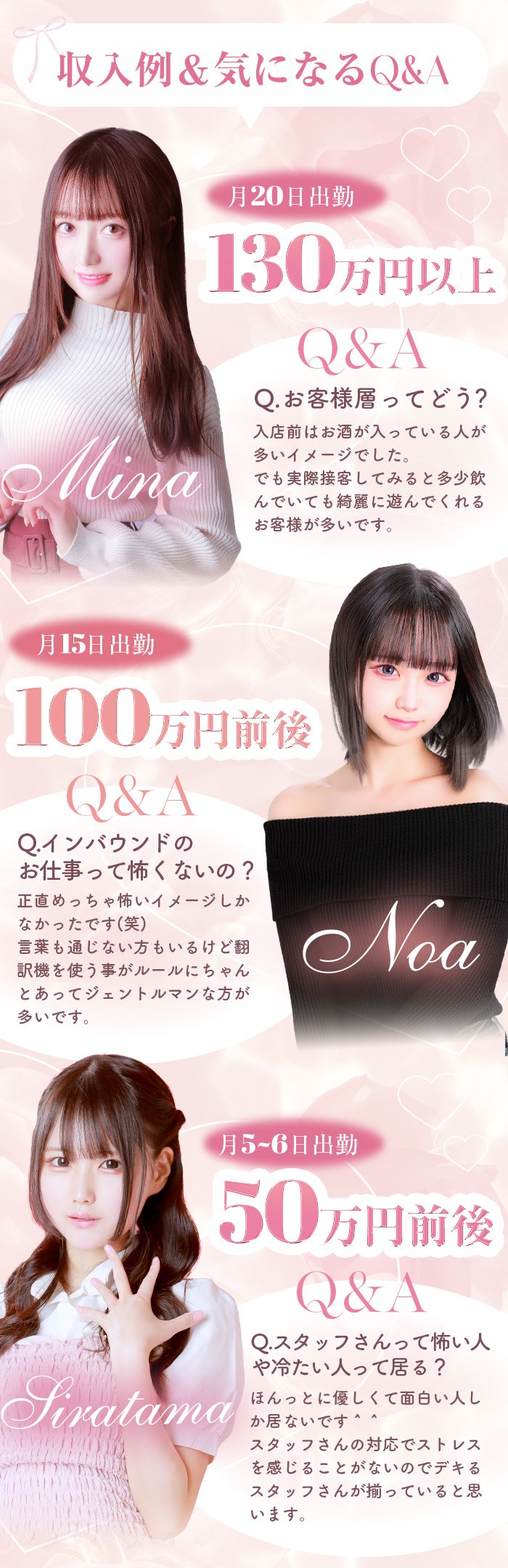 | 本日の募集人数 | 4人 | 体入給与 | 日給 46,000円 | 給与保証 | あり |