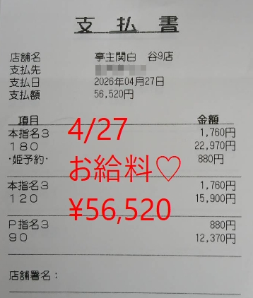 お給料 2026/04/28 16:00