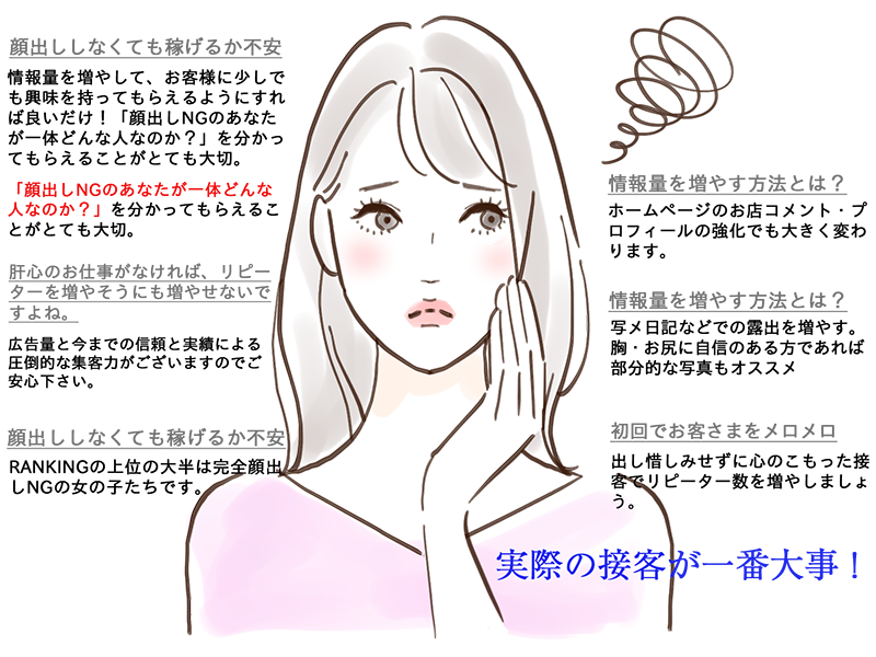 かといって、顔出ししている女性と比較してお客の数が多少なりとも少なくなる覚悟をする必要があるとかは全くないですよ。