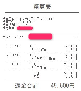 本指名バックは3,000円