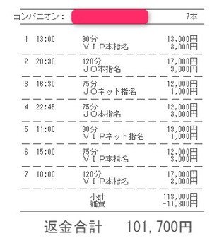 本指名バックは3,000円