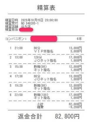 本指名バックは3,000円