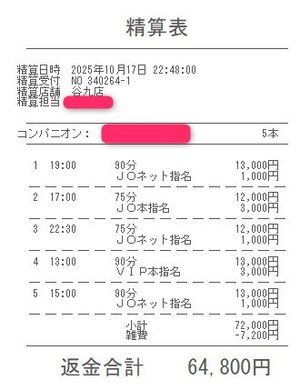 本指名バックは3,000円