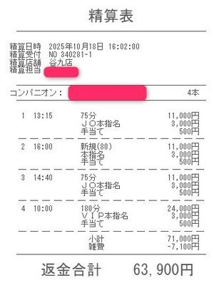 本指名バックは3,000円