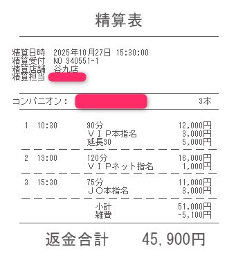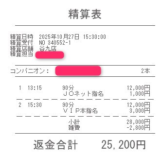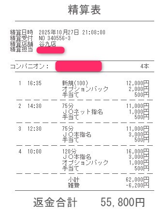本指名バックは3,000円