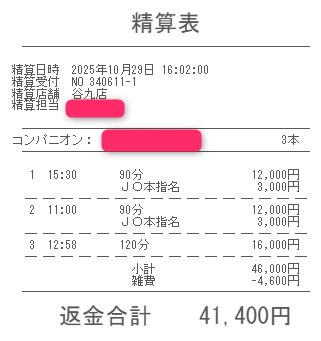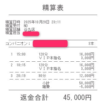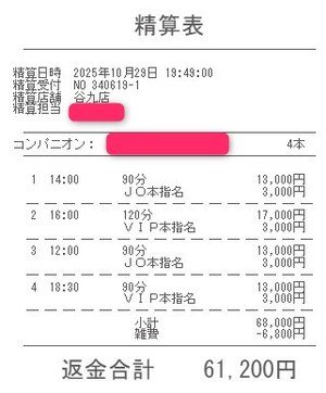 本指名バックは3,000円