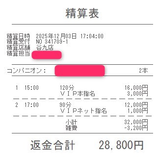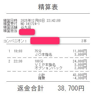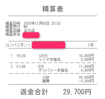 本指名バックは3,000円