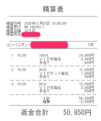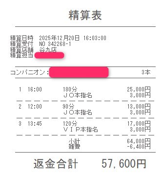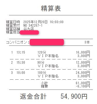 本指名バックは3,000円