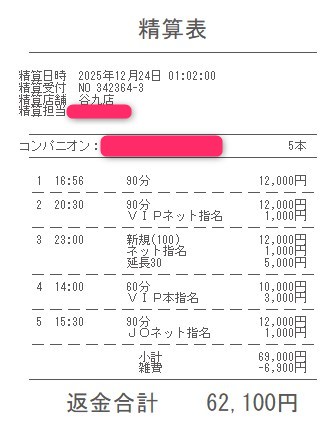 本指名バックは3,000円