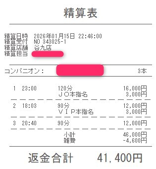 本指名バックは3,000円
