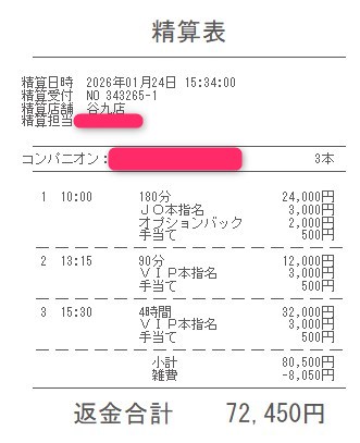 本指名バックは3,000円