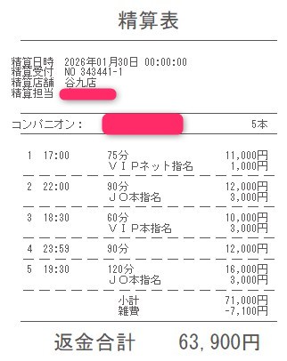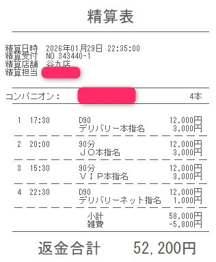 本指名バックは3,000円