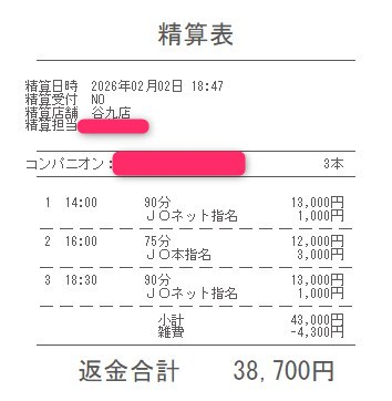 本指名バックは3,000円