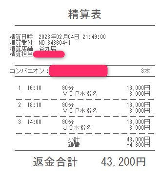 本指名バックは3,000円