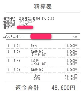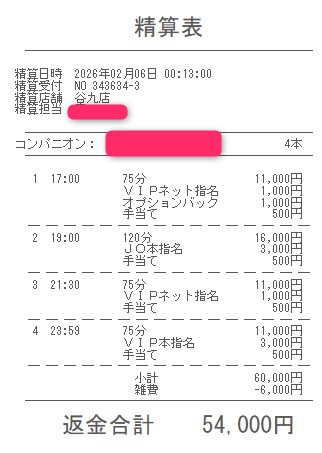 本指名バックは3,000円