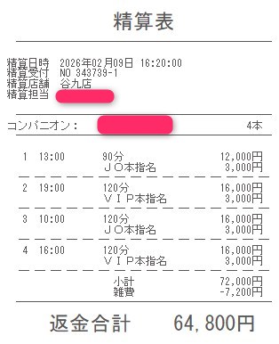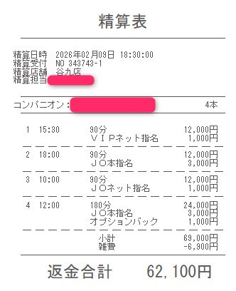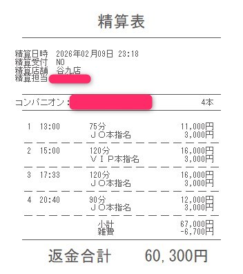 本指名バックは3,000円