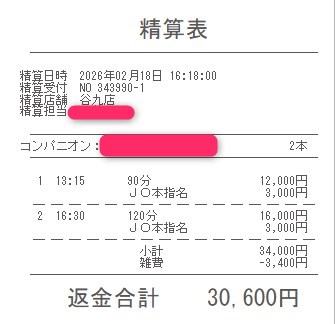 本指名バックは3,000円
