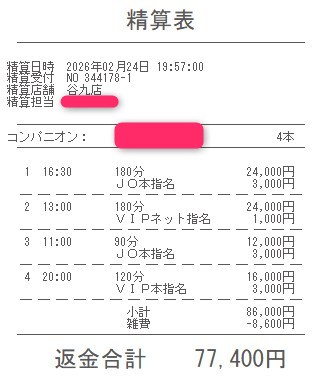 本指名バックは3,000円