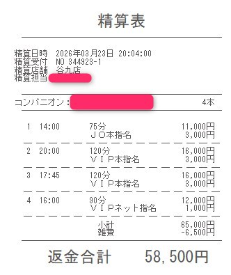 本指名バックは3,000円
