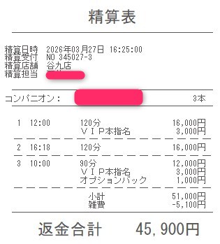 本指名バックは3,000円